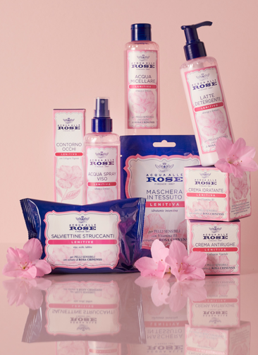 La Linea Lenitiva di Acqua alle Rose, arricchita con Collagene Vegetale di Rosa Chinensis, idrata intensamente, distente i tratti del viso e lenisce la pelle sensibile proteggendola dagli stress ambientali e stagionali.