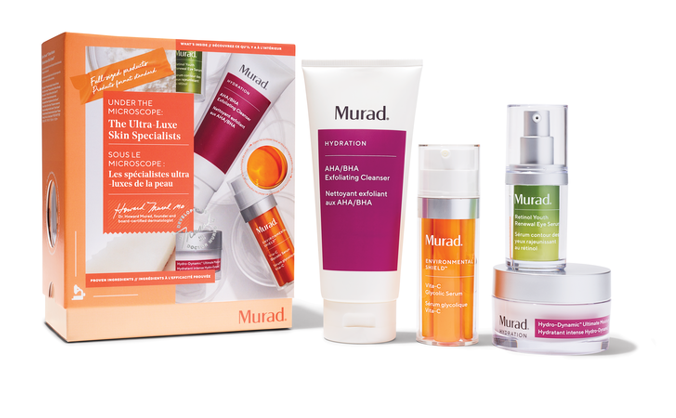 The Ultra-Luxe Skin Specialists. Contiene: AHA/BHA Exfoliating Cleanser (200 ml), Vita-C Glycolic Serum (30 ml), Retinol Youth Renewal Eye Serum (15 ml), Hydro-Dynamic Ultimate Moisture (50 ml). € 219
