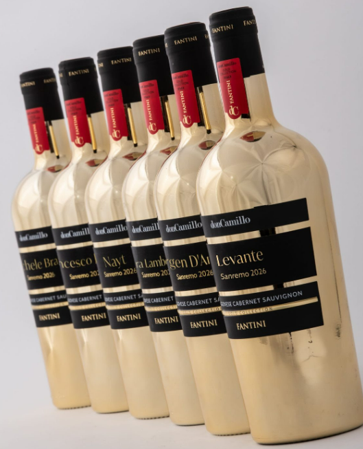 L’eleganza quest’anno ha un riflesso lucente e un’anima profondamente abruzzese. Il protagonista indiscusso dei calici è il Don Camillo – Gold Collection, un vino che non passa inosservato grazie alla sua iconica bottiglia totalmente dorata con etichetta nera a contrasto. Quest’anno, però, c’è una sorpresa in più dedicata ai protagonisti della kermesse: Fantini Wines ha creato una special edition personalizzata. Ogni artista riceverà infatti una bottiglia che riporta il proprio nome in etichetta, un omaggio sartoriale che trasforma un prodotto d’eccellenza in un prezioso ricordo di questa avventura sanremese. Come sottolineato da Giulia Sciotti, marketing manager del gruppo, si tratta di un “vino da festival” capace di incarnare l’idea di lusso accessibile e celebrazione.
