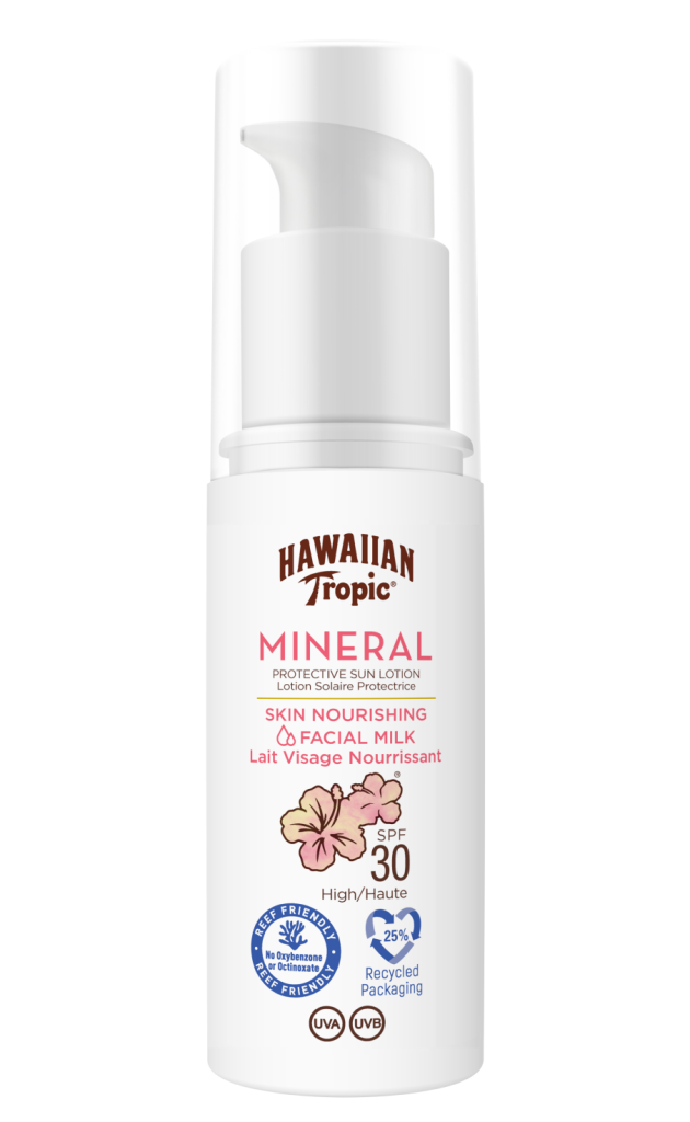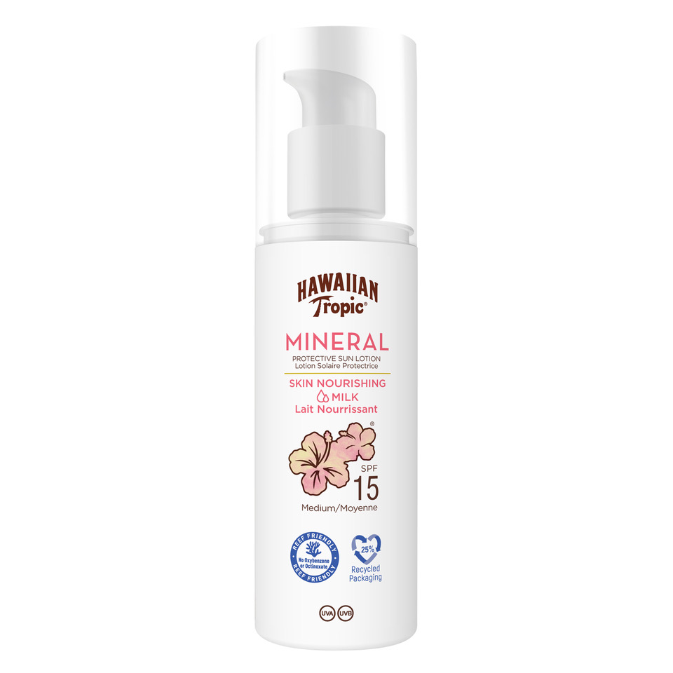Hawaiian Tropic Mineral Skin Nourishing Milk: un latte nutriente dalla texture leggera effetto seta, che si fonde con la pelle senza lasciare residui, donandole omogeneità. Mineral è la prima linea di lozioni solari del brand con il 100% di filtri minerali, studiata per idratare e proteggere la pelle del viso e del corpo, anche la più delicata, dai raggi UVA e UVB. Le referenze utilizzano ossido di zinco di derivazione naturale per formare uno scudo protettivo sulla superficie della pelle, fungendo da barriera contro i raggi UV. La formula, leggera, idratante e resistente all’acqua, è arricchita con piante hawaiane tra cui noce di Kukui, Guava e Cocco, con l’iconico profumo Hawaiian Tropic. La linea, completamente vegan, non contiene filtri chimici, parabeni né ingredienti testati sugli animali. Una linea di prodotti amica dell’ambiente e dei mari, senza ossibenzone o ottinoxato. Mineral Protective Lozione Solare è disponibile nel formato 100ml con SPF 30 al prezzo consigliato 16,99 e SPF 15 al prezzo consigliato 14,99 .