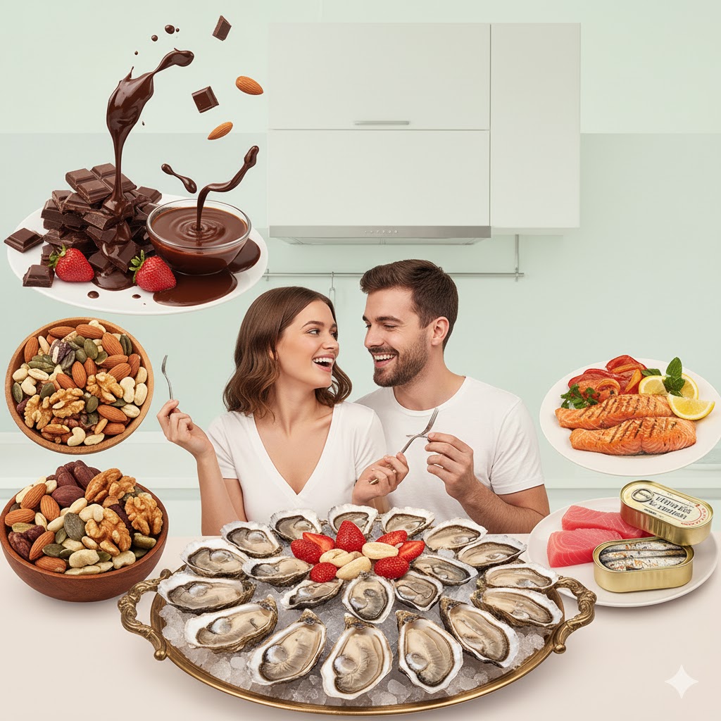 Frutti di mare e ostriche: Ricchi di zinco, favoriscono la produzione di ormoni sessuali. Un momento speciale a due con ostriche può trasformare la serata in un gioco di seduzione.