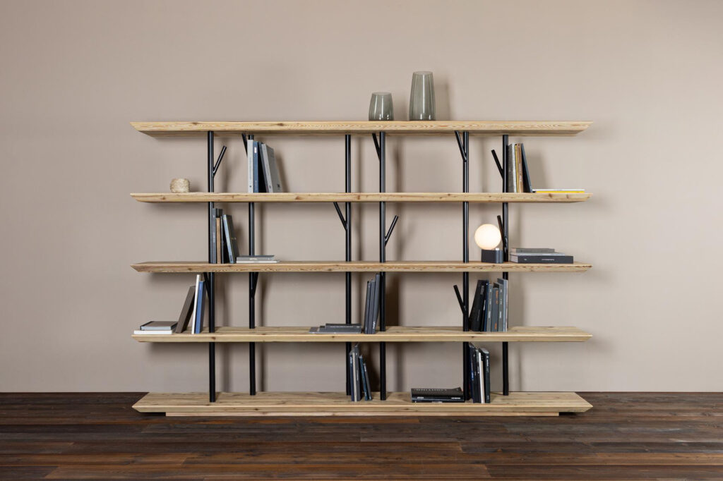 La filosofia della collezione si estende anche agli elementi complementari, pensati per adattarsi con disinvoltura a ogni esigenza. Il coffee table, perfetto come punto d’appoggio accanto al divano o come originale comodino, mantiene forme irregolari che celebrano l’imperfezione della natura. Ma è nella libreria componibile che il design si fa evolutivo: un sistema modulare che si espande proprio come un albero nel bosco. Grazie a un ingegnoso sistema di incastri con viti passanti, è possibile personalizzare altezza e larghezza, creando separatori d’ambiente o quinte scenografiche dietro il divano. Ogni pezzo firmato da Mobart Ben è rigorosamente Made in Italy e realizzabile su misura, offrendo soluzioni d’arredo che trasformano la casa in un rifugio di pace, dove il design torna finalmente alle sue radici.