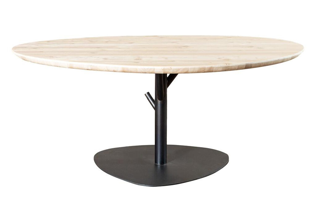 Il fulcro di questa narrazione domestica è il tavolo da pranzo, un capolavoro di ergonomia e poesia. Con il suo piano in massello dalle linee fluide e irregolari, questo elemento rompe la rigidità degli schemi tradizionali per favorire una socialità più autentica. La sua forma organica, studiata nei minimi dettagli, permette ai commensali di non trovarsi mai in una posizione di chiusura, ma di essere sempre orientati verso l’altro, facilitando lo sguardo e il dialogo. Il sostegno centrale in metallo, leggero e discreto, elimina ogni ingombro per le gambe, rendendo ogni cena un momento di assoluto relax. Per chi ama gli spazi dinamici, la versione alta dedicata al bar aggiunge un tocco di praticità sofisticata con un terzo “ramo” che funge da raffinato porta borsa.