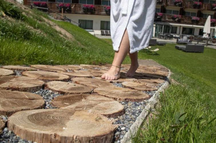 Questo rituale inizia con il Natural Barefooting: si cammina a piedi scalzi per circa 20 minuti sul percorso appositamente predisposto per percepire le differenti sensazioni attraverso la pianta del piede. Calpestando la corteccia morbida, la pietra liscia, i tronchi ondulati, i sassolini solleticanti e l’erba morbida, si cerca di capire con l’aiuto dell’operatore, i messaggi che il corpo comunica attraverso la riflessologia plantare. Ogni passo è un incontro con la vita che cresce silenziosa tra le radici, un ritorno all’essenza, un battito lento che si sintonizza con il cuore dell’altopiano di Livigno, posto a 1800 metri slm. Il piede è finalmente a contatto con la terra: un centinaio di passi per scoprire sensazioni rimaste a lungo sopite.