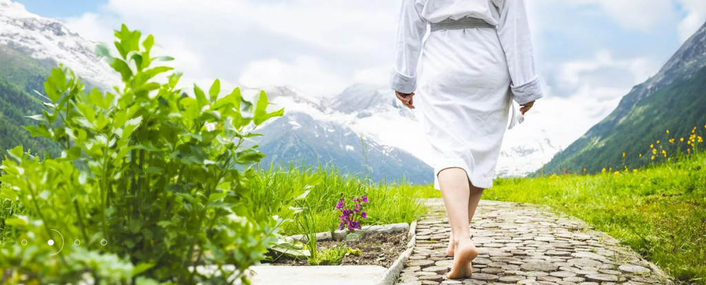 1 – Natural Barefooting Guidato; 2 – Riposo nelle Erbe Alpine; 3 – Panoramic Jacuzzi e Tisane Alpine; 4 – Pinda, Abbraccio delle Alpi.