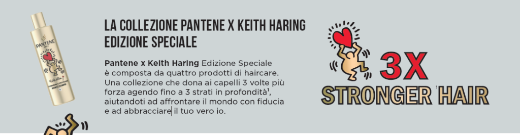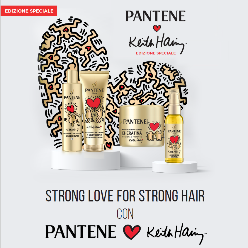 Keith Haring, una delle icone più influenti nel mondo dell’arte, ha lasciato un’impronta duratura con il suo messaggio di pace, amoree inclusività. Cresciuto nella scena pop art di New York negli anni ‘80, è diventato famoso per i suoi simboli potenti e vibranti, capacidi toccare le persone ovunque nel mondo, a tutti i livelli. In un mondo pieno di sfide, è più importante che mai sentirsi coraggiosi, pieni di spirito e avere il potere di gridarlo al mondo. il messaggio che i capelli e l’immagine di sé hanno un potere straordinario. La partnership tra Pantene e Keith Haring celebra quindi il concetto che “i capelli sani meritano un amore forte”. Grazie a prodotti creati per essere utilizzati da chiunque, la collezione Pantene x Keith Haring Edizione Speciale invita ognuno di noi ad amarsi, ad avere fiducia in sé stessi e a mostrare al mondo la propria versione migliore, riflettendo valori positivi e autentici