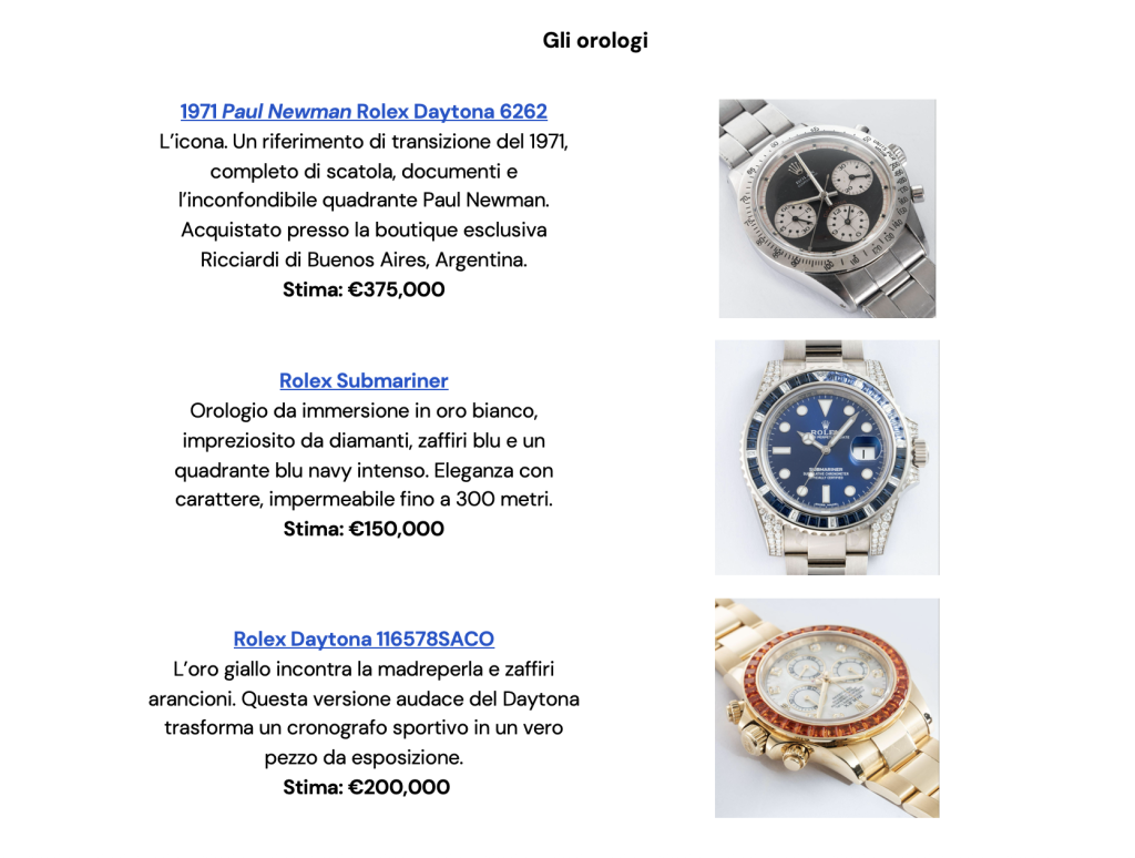 Oltre al celebre Daytona, l’asta include due esemplari preziosi dei primi anni Duemila. L’esperto di orologi di Catawiki, Joaquín Fernández Cebrián, ricorda un aneddoto fondamentale: “Quando Rolex inviò i suoi modelli pre-Daytona ai test rigorosi della NASA per scegliere l’orologio da usare nelle missioni spaziali, non superarono tutti i test e fu scelto lo Speedmaster di Omega. Ma ciò che non è stato scelto dalla scienza, è stato consacrato dalla cultura”. L’evento online resterà attivo fino al termine di novembre.