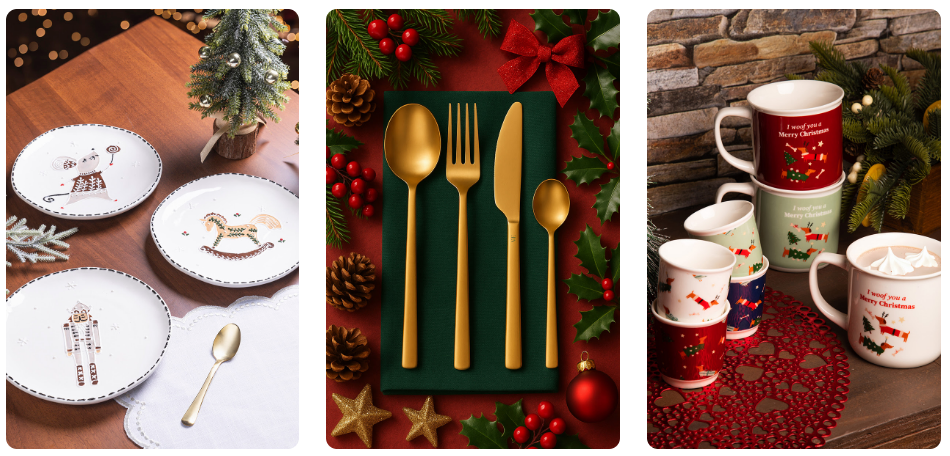 La tavola diventa il cuore pulsante delle feste: luogo d’incontro, di sguardi e di storie. Tra porcellane luminose, bicchieri che catturano la luce e dettagli decorativi che raccontano di tradizione e contemporaneità, ogni elemento parla di cura e di emozione.