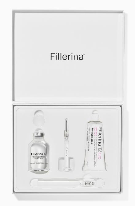 Fillerina 12 Double Filler Volume Seno è un preparato cosmetico specifico per riempire un seno piccolo o poco tonico grazie all’effetto rimpolpante e riempitivo. Pertanto le concentrazioni delle molecole attive sono crescenti con dosaggi corrispondenti a tre tipologie di necessità/bisogno che ciascuna consumatrice può stabilire.