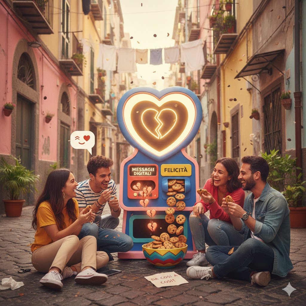 Per chi quest’anno vuole dare una svolta ironica alle proprie pene d’amore, l’appuntamento imperdibile è a Napoli. Proprio nel suggestivo Vicolo dell’Amore, sabato 14 febbraio, apparirà un’installazione davvero originale. Si tratta di una macchina speciale capace di accogliere i messaggi digitali più dolorosi ricevuti sul cellulare per trasformarli in qualcosa di decisamente più gratificante. Scansionando un codice, quella frase gelida che ha spezzato il cuore diventerà la dedica stampata su una confezione in edizione limitata di Gocciole, il celebre frollino che da decenni accompagna il risveglio delle famiglie italiane.