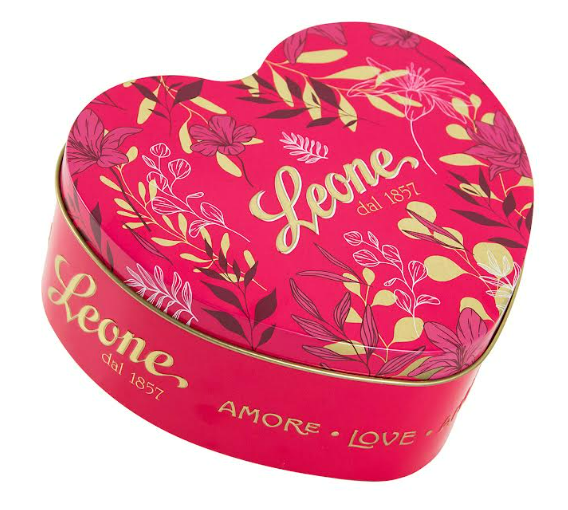 Pastiglie Leone Latta a cuore con praline frutta e cioccolato fondente