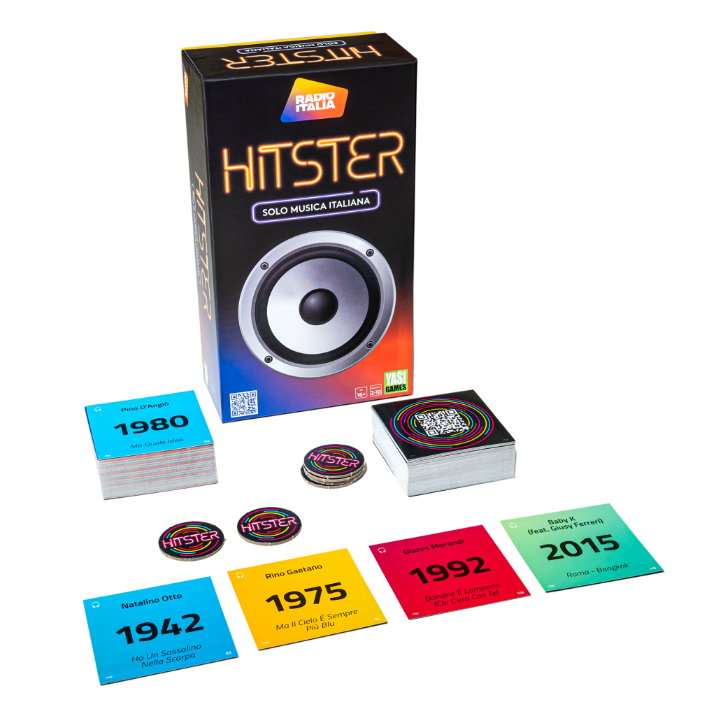 E per immergersi ancora di più nell’atmosfera sanremese c’è Hitster Radio Italia! Basata sullo stesso gameplay, questa versione ripercorre un secolo di meravigliosa musica italiana, proiettando tutti direttamente nella storia del festival di Sanremo e rendendo questo party game l’intrattenimento perfetto per chiunque sia un amante della musica italiana, prima dopo e durante il Festival! Hitster trasporta i giocatori sullo scintillante palco dell’Ariston, grazie alla sua playlist di 300 canzoni selezionate dall’amata Radio Italia, che include alcuni tra i grandi successi che hanno incantato il pubblico nelle storiche edizioni del Festival, ma anche i brani più famosi degli artisti che a breve calcheranno il suo palco, dalle giovani star come Elodie Rocco Hunt fino alle icone intramontabili come Giorgia e Massimo Ranieri.