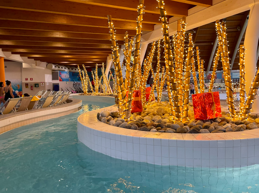 Mentre i più piccoli si divertiranno tra scivoli e giochi d’acqua, gli adulti potranno vivere momenti di puro relax e stupore nell’atmosfera magica del Natale più luminoso d’Italia.