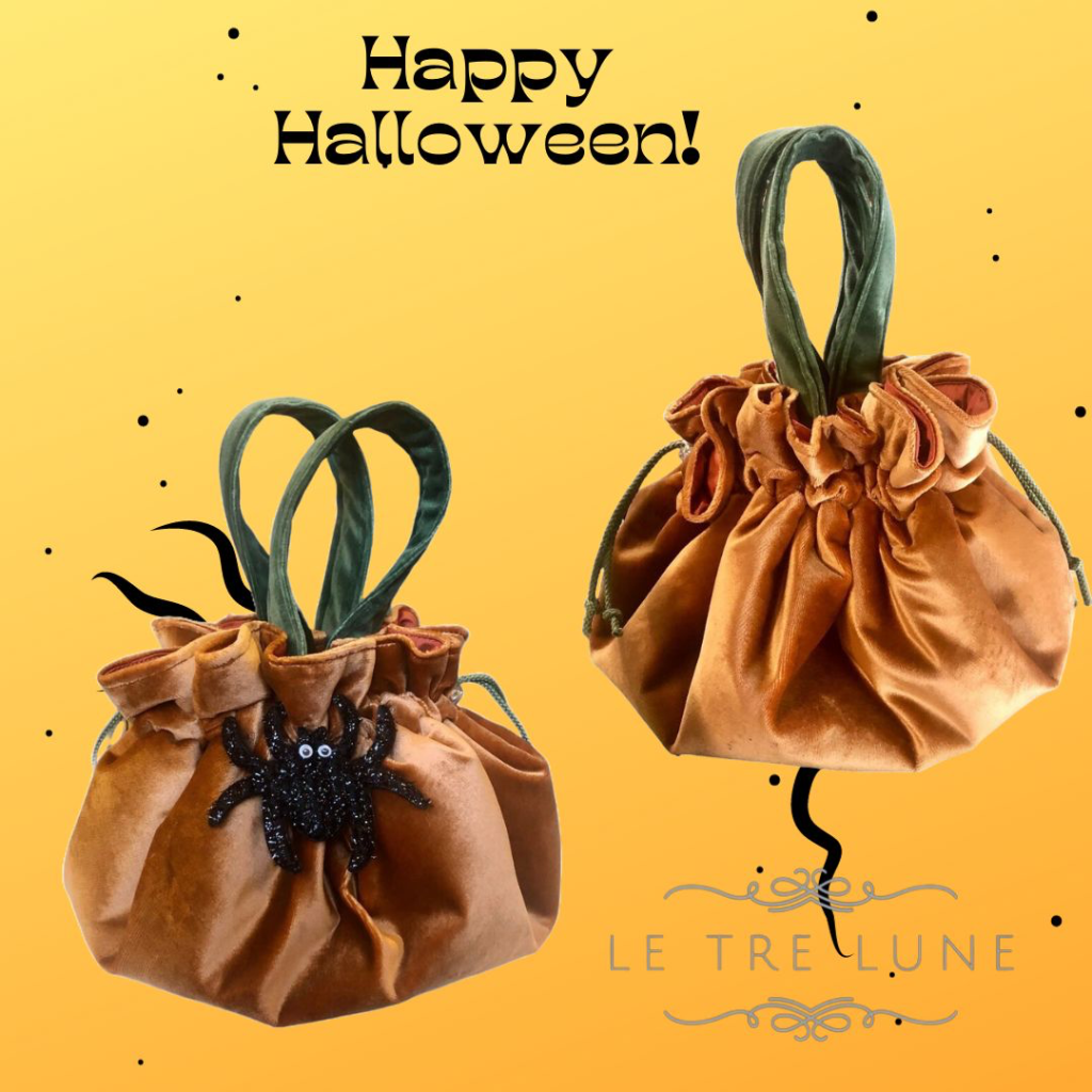 Halloween si sta avvicinando e “Le Tre Lune Accessori” (il brand di Genova noto per le sue creazioni personalizzate fatte a mano utilizzando tessuti d’arredo vintage, campionari usciti di produzione o pezze di scarto perché troppo piccole per essere utilizzate nell’arredo), ha creato la capsule collection “Halloween in orange”. Una pochette dal sapore Settecentesco inizi Ottocento, quando le dame francesi erano solite utilizzare dei sacchetti in seta ricamati e portati legati in vita chiamati appunto poches, dove mettevano oggetti che ritenevano essenziali come la boccetta di profumo, ago e filo o i sali in caso di svenimenti. Silvia Cartotto Crovetto e Maria Basso, fondatrici di “Le Tre Lune Accessori”, proprio per Halloween, hanno voluto creare una capsule collection con pochette da sera in velluto imbottito, foderate in seta e con manici in velluto. La pochette, a sacchetta, ricorda una zucca, sia per la forma che per il colore arancio…un consiglio? Se si è invitati per la serata Halloween meglio scegliere la pochette con l’applicazione di un ragnetto con piccoli strass. Tutte le creazioni sono fatte a mano con dimensione: h 20 cm, larghezza 25 cm, manici 35 cm, €80. www.letrelune.it