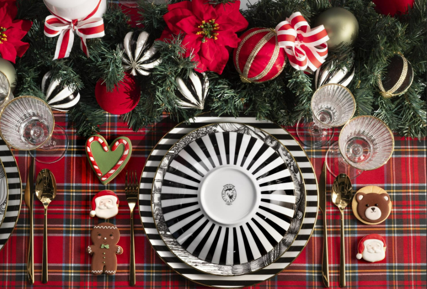 Lo shooting ne cattura l’essenza più autentica: una tavola imbandita come una scena incantata, dove ogni elemento dialoga con l’altro in un equilibrio perfetto tra eleganza e sorpresa. Al centro, un albero di Natale unico, creato con il packaging dei piatti, trasformato in una scultura festosa e contemporanea. Attorno, i piatti del pane brillano come piccole palline sull’abete, mentre i piattini del caffè compongono una ghirlanda di ceramica intrecciata a rami di pino, un omaggio alle tradizioni che incontra la freschezza del design.