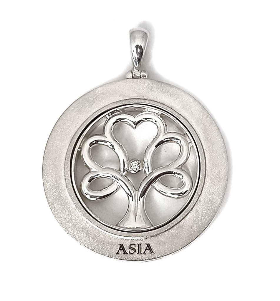 Il ciondolo della collezione Vita di Ivan Barbato in oro bianco, è ornato da piccoli diamanti è destinato a chi ama la luminosità della gemma più preziosa… Il ciondolo gioiello è personalizzabile con i nomi dei figli o una breve frase. Dimensione ciondolo 25mm, caratura totale 0,56, prezzo € 2.470,00