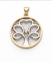 Il pendente dedicato Vita di Ivan Barbato nella versione liscia e lucida in oro giallo 18kt e argento 925, è personalizzabile con nomi o una breve frase. Dimensione ciondolo 25mm, caratura pietra centrale 0,025 prezzo € 850,00