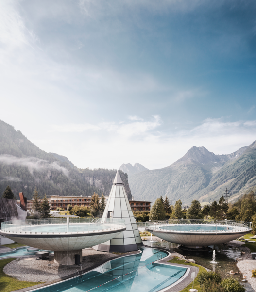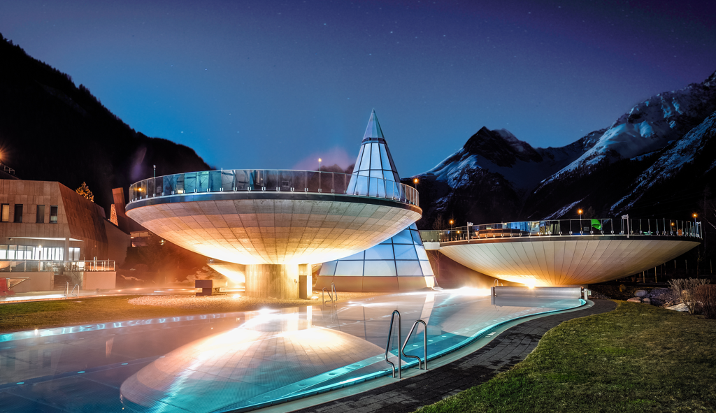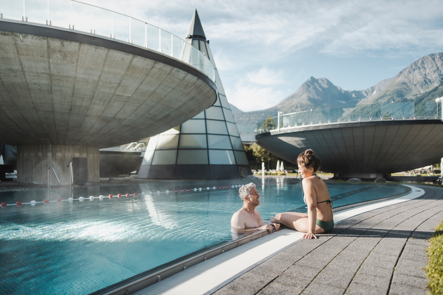 Gli scarponi da trekking possono riposare dopo le escursioni: i piedi stanchi possono tirare un sospiro di sollievo e indossare comode infradito. Ci si tuffa nell’acqua termale che sgorga da una profondità di 1865 metri, carica di minerali e sostanze benefiche per la pelle. Si nuota all’aperto nella piscina sportiva per qualche bracciata rinfrescante o – completamente rilassati – nelle tre vasche circolari, che sembrano galleggiare tra le cime delle montagne. L’immagine delle piscine “sospese” nell’aria ha fatto il giro non solo delle Alpi: AQUA DOME è stato recentemente insignita del “World Spa Award” come “World’s Best Mineral & Hot Springs Spa 2024” per le migliori prestazioni nel settore delle terme e del benessere come resort termale di più alta qualità nella regione alpina.