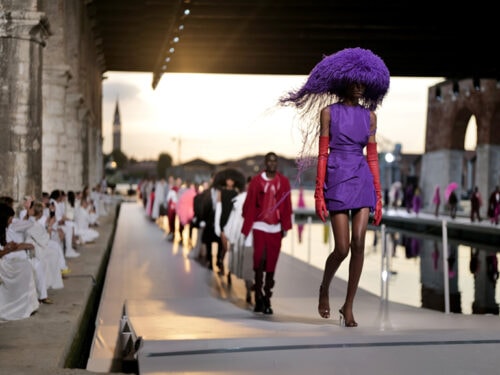 È il primo evento post pandemia della Maison romana. Ha scelto come cornice Le Gaggiandre, le tettoie acquatiche costruite nel 1500 per il ricovero delle barche. Il direttore creativo in questa collezione ha coinvolto artisti e artigiani per dare vita a veri capolavori. La Darsena è il simbolo del fare rinascimentale. La sfilata è stata accompagnata dalla voce dell’artista londinese Cosima accompagnata da un pianoforte.
