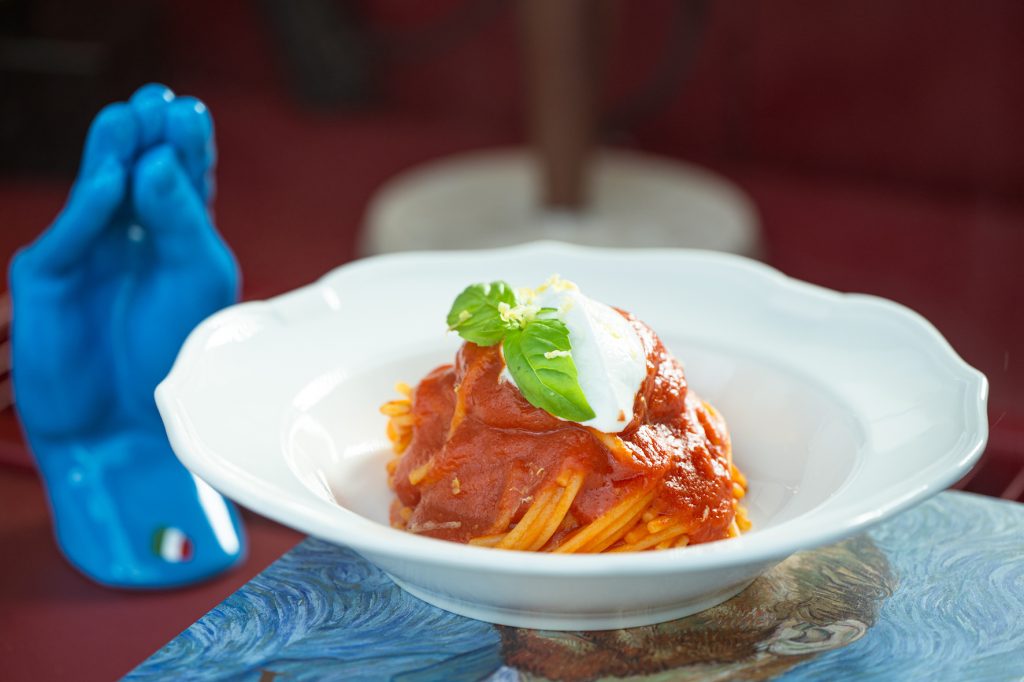 A pochi passi dal lungomare di Napoli, Casa Vittoria, in Piazza Vittoria 6, è il ristorante che celebra la cucina italiana in tutte le sue sfumature, offrendo un’esperienza che è un ritorno alla tradizione. Qui, lo Spaghetto alla Casa Vittoria rappresenta un vero inno all’italianità, un piatto che unisce semplicità e materie prime d’eccellenza. Realizzato con una combinazione di tre varietà di pomodoro (San Marzano, Piennolo e Datterino), lo spaghetto di Gragnano IGP viene servito con una quenelle di ricotta di bufala e completato con una grattugiata di buccia di cedro al tavolo, che dona al piatto profumi e sentori mediterranei. Un’interpretazione raffinata del classico spaghetto al pomodoro, amata incondizionatamente dagli italiani, in un equilibrio perfetto tra acidità, dolcezza e mineralità.